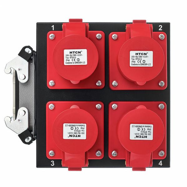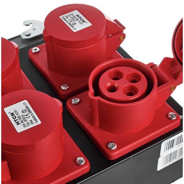 - Sortides: 4x CEE16 4p, 400V color vermell