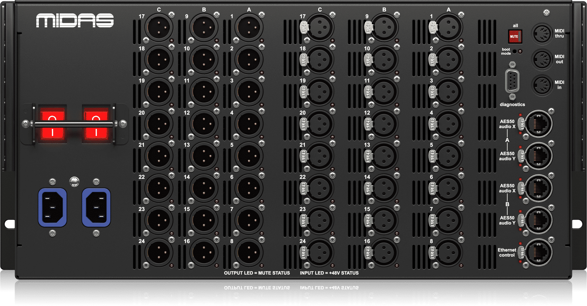 - 2 preamplificadors de micròfon Midas guardonats per canal amb alimentació phantom +48 V commutable.