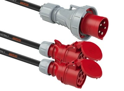 Adaptador Mascle CEE 63A 5P a 2x Femella CEE 32A 5P.