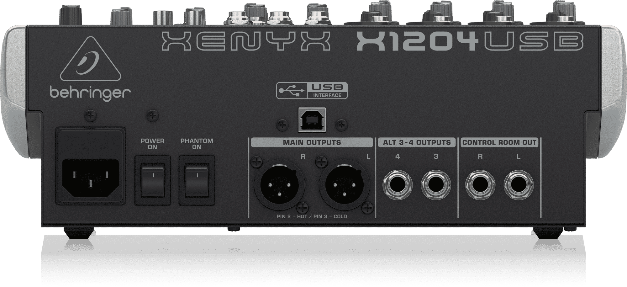 La taula de so Behringer X1204 USB és un mesclador premium de 12 entrades de 2/2 bus amb preamplificadors i compressors de micròfon XENYX, EQ britànic, processador multi-FX de 24 bits i interfície USB/àudio.